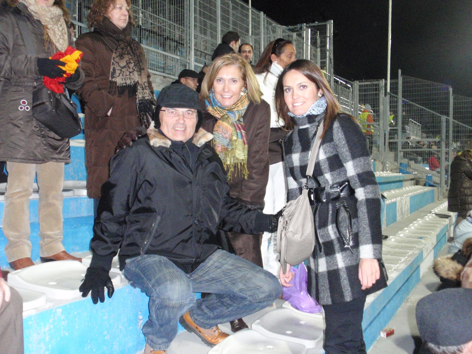 Manolo y Rosa junto a su hija, en el Velodrome de Marsella. |