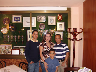 En el día de ayer, Gerardo (presidente de la Peña) y Antonio (es decir, yo, responsable del Blog), acompañamos a la familia Peñaloza a visitar nuestra sede y nuestro estadio. Esta familia venida de Venezuela, nos conoció por medio del cabeza de familia, Javier, el cual a través de Internet encontró nuestro Blog y nuestro Facebook. Javier, junto a su mujer e hijos, están de vacaciones en Madrid, ya han visto el partido que nos enfrento al Tottenham y próximamente presenciaran el partido de semifinales frente al Barça. También Javier y su mujer Mirian se han hecho socios de nuestra Peña. Durante la visita al Bernabéu nos demostraron su madridismo y el amor que sienten por nuestro equipo. A Javier, Mirian, Alejandro y Samuel, queremos agradecerles su simpatía y su madridismo, y decirles que ya son una parte más de nuestra Gran Familia.