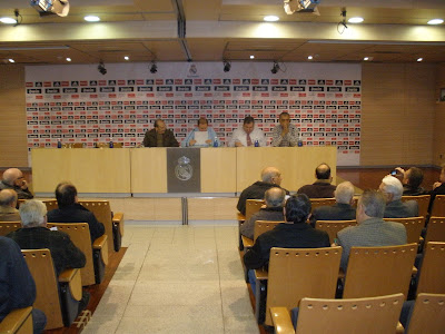 Para el día de hoy estaban convocadas en la Sala de Prensa del Santiago Bernabéu, la Elecciones a la Presidencia de la Federación de Peñas Madridistas de la Comunidad de Madrid. La Junta Gestora, encabezada por Luis Cáceres (Peña Ibáñez) ha informado a los presentes (38 peñas) que solo se presentaba una candidatura. Ha habido varias intervenciones de los presentes, destacando la de Eugenio Escudero (Peña Hirundo) que explicaba una propuesta que había hecho a la Junta Directiva anterior, así como através de correos electrónicos a los representantes de las demás Peñas, de haber presentado una candidatura única formada por presidentes de varias Peñas, y que luego los que formasen esa candidatura única, eligiesen entre ellos los cargos. Eugenio explicaba que al final desistió de esa opción, abriéndose un pequeño debate sobre dicha posibilidad. También se ha hablado de otros temas. Un de los representado a preguntado que por qué no todas las Peñas de Madrid formaban parte de la Federación.