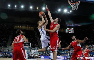 Ayer si, ayer el Madrid de baloncesto dio su mejor versión, y apabullo a uno de los mejores equipos de Europa en el momento actual. Jugo como un bloque compacto y todos los jugadores rayaron a gran altura. En el parcial del primer cuarto los madridistas se impusieron por 10 puntos de diferencia (24-14), basando este primer parcial en una defensa muy segura. Los griegos, que no son mancos, enseñaron las uñas en el segundo cuarto, llevándose este parcial por 18-20. El inicio de la segunda mitad del choque no vario el guión de inicio, siguiendo los madridistas mostrándose sólidos en todas sus líneas y facetas del juego. En el marcador fue el parcial más igualado, ya que al final del tercer cuarto el parcial era de 16-16. El objetivo de los hombres de Messina en el ultimo cuarto, era mantener la ventaja y superar el basketaverage (16). Y el Madrid logro imponerse en este ultimo cuarto, pero se quedo a tres puntos de superar la ventaja que los griegos consiguieron en Atenas. El parcial del ultimo acto fue de 24-18, dejando el marcador final en un meritorio 82-68 para los merengues.