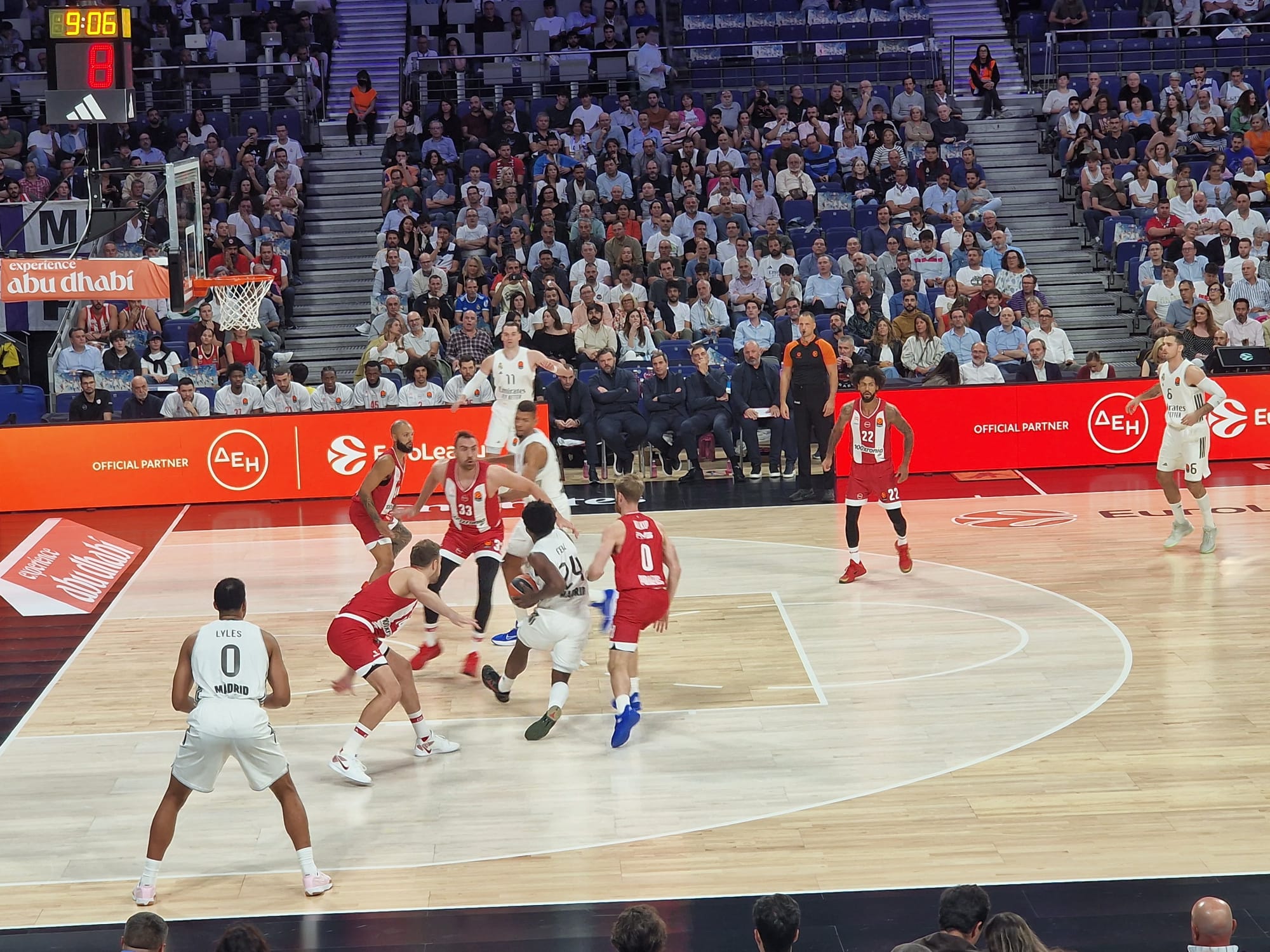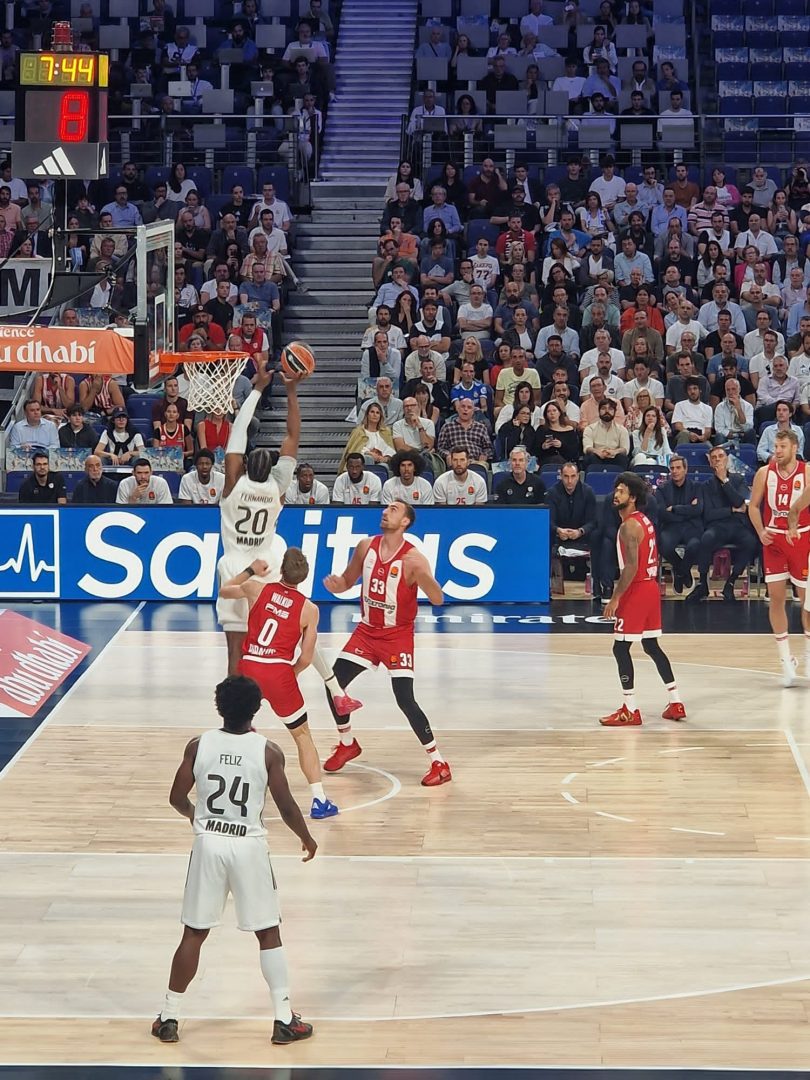 La segunda parte arrancó con un Madrid transformado. Andrés Feliz salió con una marcha más tras el descanso, liderando el buen momento del equipo con 5 puntos consecutivos y varias buenas acciones en defensa. El dominicano fue el ejemplo de intensidad que el equipo necesitaba, contagiando energía a sus compañeros. Mario aportó 5 puntos consecutivos que igualaban el encuentro (59-59) desatando la locura en las gradas. Sin embargo, las complicaciones llegaron con la tercera falta de chiquitín, que le llevaron al banquillo. Milutinov ganó protagonismo bajo los aros pese a la pelea de Bruno Fernando, canastas fáciles que los griegos aprovecharon para volver a tomar distancia. Seguíamos por debajo, cinco puntos al finalizar el cuarto (64-69), pero con la sensación de haber encontrado el modo de hacer daño.