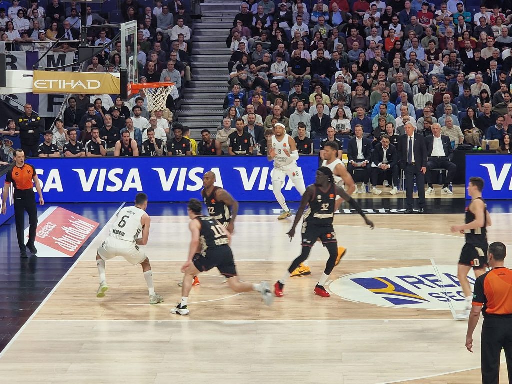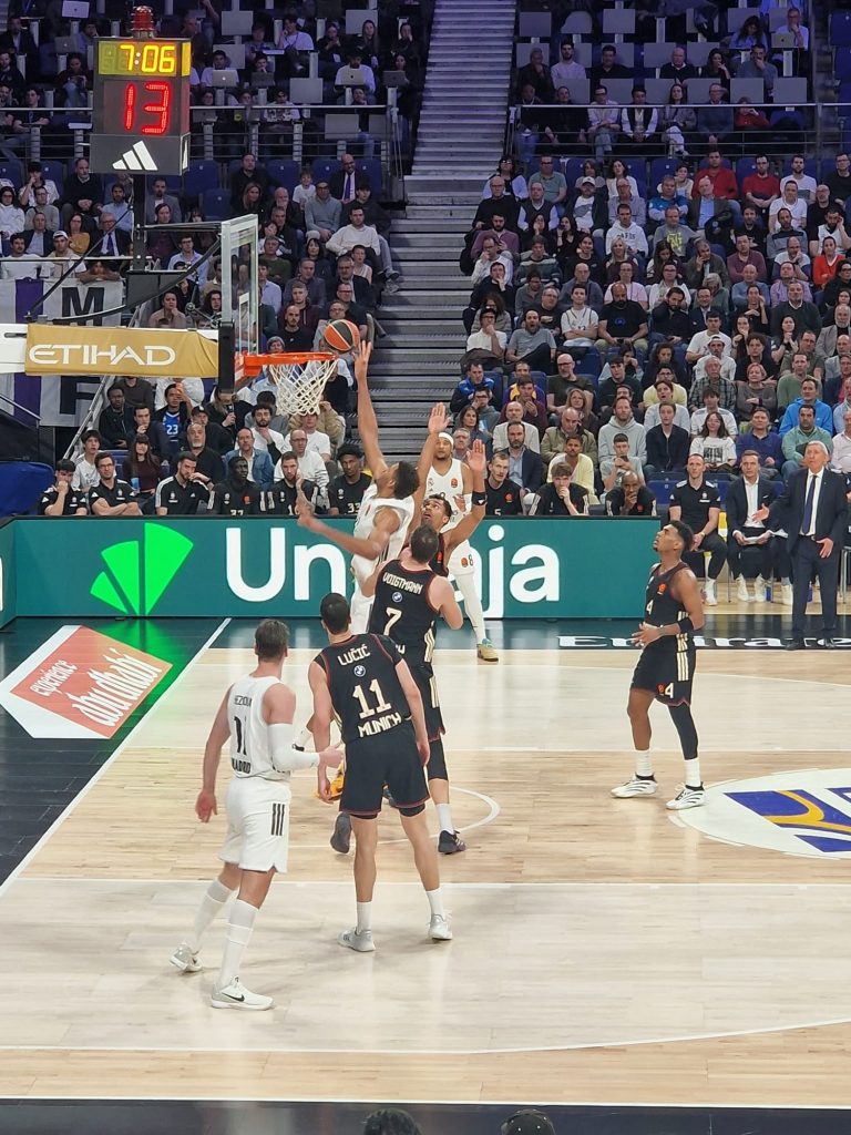 Ambiente «triste» en el Palacio, con mucha decepción entre los asistentes y también algún enfado que parte del público focalizó en nuestro entrenador con pitos en su presentación. Los jugadores salieron muy concentrados, el ritmo de competición no deja margen a lamentaciones. Enfrente un Bayern que no podía contar con su gran estrella, Andras Obst, un tirador extraordinario cuya ausencia mermaba las opciones del rival. De inicio Super Mario cogió las riendas, asumió el papel de líder con 8 puntos en el parcial de 15-4 con el que se inició el partido, Tavares dominaba el juego interior, el equipo mostraba una gran solidez defensiva y en ataque gran fluidez. Las habituales rotaciones del equipo no bajaron la intensidad, con Feliz en gran momento y Lyles que recuperaba sensaciones se llegaba al final del periodo con un 19-12, y la sensación de que el partido no se complicaría.