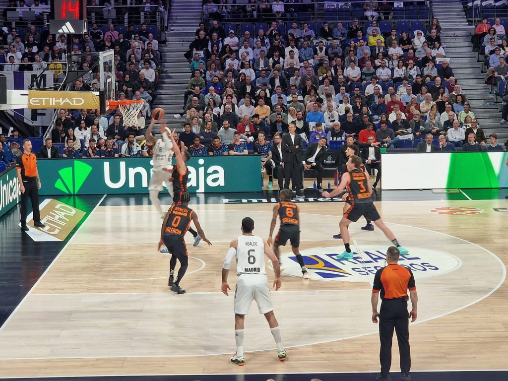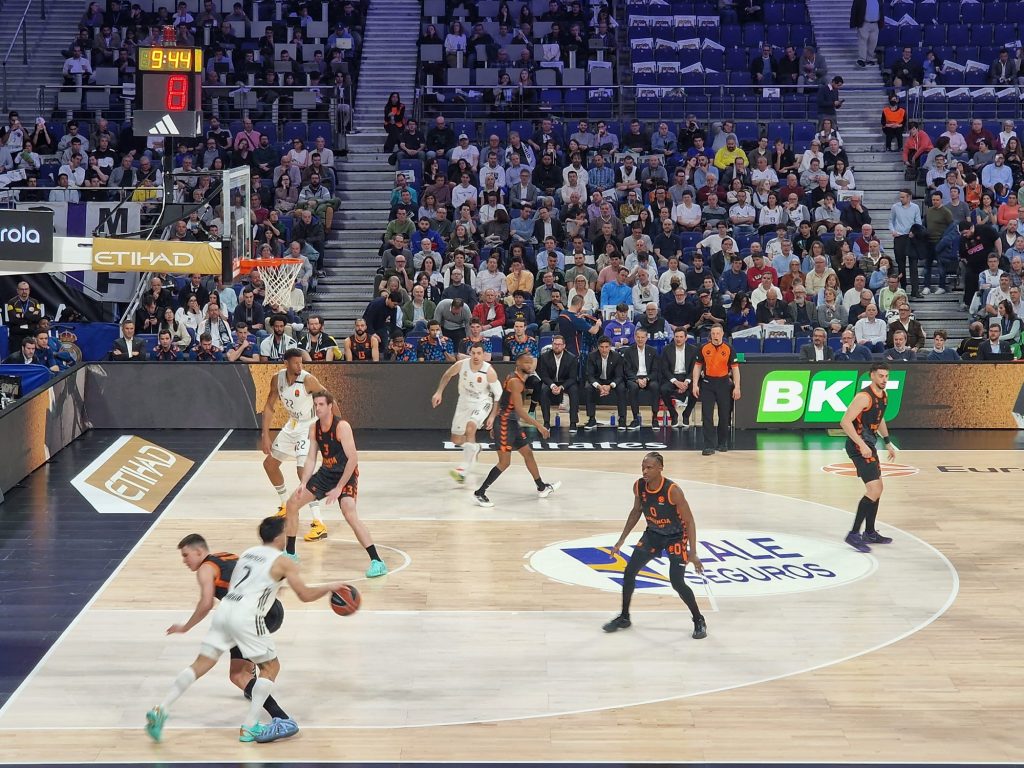 Antes del salto inicial se guardó un minuto de silencio en memoria de Vicente Paniagua leyenda del Real Madrid ante un Palacio con una gran entrada, las acciones realizadas en la sección han ayudado, primer cuarto de máxima igualdad donde ambos equipos calcaron estadísticas tanto en el rebote ofensivo con cinco cada uno y sumando los mismos triples también con tres cada equipo, en el Madrid protagonismo para Chiquitín y Super Mario, en nuestro rival como es habitual ataques muy rápidos en los primeros segundos de posesión y juego desde el perímetro con protagonismo para Jean Montero. El Valencia logró adelantarse con 12-16 pero un triple de Feliz, en un gran momento de forma, y la ayuda de Deck permitieron dar la vuelta al marcador al finalizar el cuarto, 20-19. Lo había dicho Scariolo en la previa, era muy importante frenar el arranque de Valencia donde suele anotar por encima de los 30 puntos, sin ir más lejos podemos mirar el resultado del primer cuarto en la semifinal de copa, el equipo con grandes defensas en cambio lo consiguió.