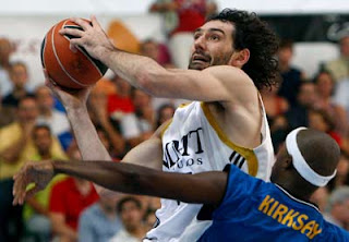 El equipo de baloncesto despues de ver lo que le habia pasado el dia anterior al de futbol, no quiso sorpresas y desde el primer minuto salio a por el partido. Los hombres de Messina vencieron al Asseco Prokom por 94-72, llegano a llevar una ventaja de 34 puntos (81-47). El entrenador italiano presento el siguiente cinco inicial. Prigioni, Hansen, Lavrinovic, Garbajosa y Bullock , este cinco viene siendo el habitual de Messina en los ultimos encuentros. Una vez más, Lavrinovic volvio a ser el mejor de los madridistas, anotando 19 puntos a los que unio 5 asistencias y 5 rebotes. Tambien fue destacada la actuación de Garbajosa (13 puntos)y Bullock (15 puntos).