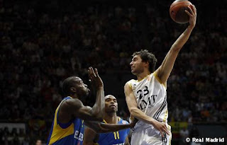no, parece que no es esta una buena semana para el madridismo, esperemos que este fin de semana se vuelva a la senda del triunfo en todas las secciones del club. Ayer el equipo de baloncesto tenia la oportunidad de ganando este partido, pasar como primeros de grupo a cuartos de final, y de esa manera evitar el cruce con el Barcelona, pero no fue así. Casi, fue un calco del partido que la noche anterior jugo el equipo de futbol, quizá incluso peor. Se tenia el partido y el primer puesto en la mano, y se tiro por la borda. Los dos primeros cuartos fueron de dominio blanco, y por juego y resultado nada hacia presagiar que no se pudiese conseguir la victoria (17-10)(14-11). El tercer cuarto estuvo mas igualado, y aunque el parcial fue favorable a los israelíes, los jugadores madridistas seguían jugando un buen partido (14-15). Los primeros minutos del ultimo acto mantuvieron la igualdad en el juego, que no en el marcador que seguía dominado con una cómoda ventaja por los hombres de Messina. Pero todo se tiro por la borda en los últimos cinco minutos. El juego de los madridistas se resintió cuando Tomic salio del partido, y el Maccabi se hizo con el encuentro. A falta de 39 segundos el Maccabi ganaba 61-64 pero Hansen anotaba un triple que empataba el encuentro. Los israelíes protestaron en masa por creer que el jugador madridista anotaba acaba la posesión del conjunto blanco, y lograban que poco después los arbitros pitaran una falta mas que dudosa a su favor. La anotación de los tiros libres daban la victoria al Maccabi y dejaba al Madrid sin la primera plaza del grupo.