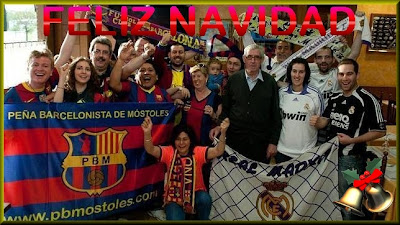 Pablo ¡que es Navidad! me parece raro que todo te parezca mal. En Móstoles habrá gente del Madrid y gente del Barcelona y si se juntan para hacerse una foto me parece perfecto. Si son del Barcelona y se visten del Madrid, creo que todavía tiene más valor ¡yo nunca me vestiría del Barcelona! Pablo ¡Feliz Navidad!