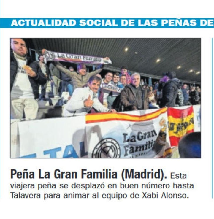 Empezamos el 2026 con ilusión, tanto en lo personal, como en lo deportivo. La Gran Familia sigue trabajando para dar el mejor servio a sus socios y seguir apoyando en todo momento a todos nuestros equipos, en los mejores momentos, pero sobre todo cuándo las cosas no nos vayan tan bien. Y os animamos a que participéis en todas las actividades que la Peña os proponga. Entre ellas, aportar vuestras fotografías apoyando a nuestros equipos a ésta Historia Gráfica. Feliz años a todos y Hala Madrid siempre!!!