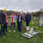 Volviendo al homenaje celebrado, indicar que gracias al contacto que se mantiene vivo con un grupo de aficionados del Liverpool que nos visitaron en Madrid hace unos años, en las entonces comidas de hermanamiento que la Federación de Peñas del R.Madrid celebrada con las aficiones contrarias de los equipos más representativos de Europa, cuando nos visitaban en Madrid, hace unas semanas se puso en contacto con nosotros, Les Wright, miembro del grupo de fans del LiverpooL IRREGULARS, para indicarnos que un miembro del grupo de fans, Kevin Cuchbartson, vecino de la ciudad de Wallasay, había descubierto la tumba de Arthur Johnson y que había procedido a arreglarla y que estaban organizando un pequeño homenaje con motivo de la visita del R.Madrid para el partido de Copa de Europa.