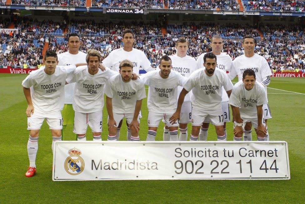 Equipo titular con la leyenda de apoyo a Nepal. fotografía as.com |