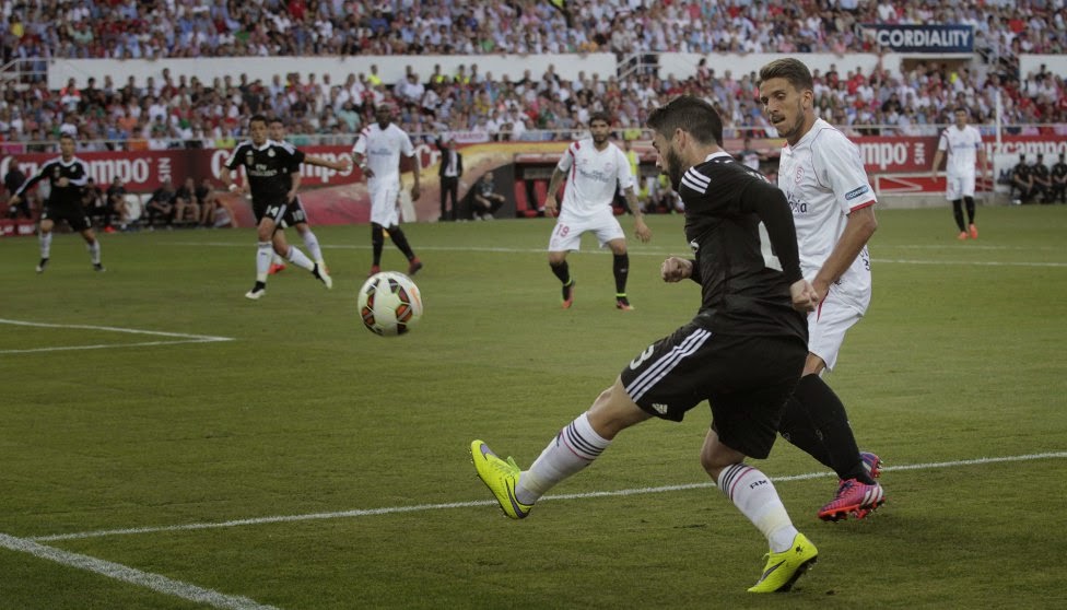 Aunque el Sevilla apretaba mucho, el Madrid tampoco aflojaba, y en el minuto 69 el Madrid iba a poner de nuevo tierra de por medio en el marcador. Bale, que había entrado por Chicharito, pone un gran centro sobre la cabeza de Cristiano y el portugués se saca un gran remate que supera al Rico y entra pegado al otro palo. Pudo llegar el cuarto para el Madrid con un disparo lejano de Kroos que sale rozando la escuadra.