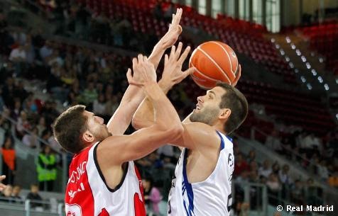 Primer partido como local en el campeonato liguero, y estreno de la nueva casa de nuestro equipo, la Caja Mágica. Aunque la primera mitad del choque fue dominada por la igualdad entre los dos equipos, a partir del tercer cuarto, los madridistas hicieron valer su superioridad para imponerse a un Manresa que durante los dos primeros cuartos se mostró muy firme en defensa. De momento, parece que el equipo ha reaccionado al batacazo que supuso la derrota frente al Barcelona en la Supercopa. Como os decía, los dos primeros cuartos fueron bastante igualados, en parte por la gran defensa manresana, en parte por el mal bagaje defensivo de los madridistas. 25-24 y 22-15, fueron los parciales de la primera mitad del choque. Con ocho puntos de ventaja comenzaban los madridistas el inicio de la segunda mitad, y aprovechando su mejoría en el juego defensivo, casi sentenciaron el partido. Un parcial de 21-9 en este tercer cuarto, ponían a los madridistas con una ventaja de 20 puntos. El parcial de 13-15 del ultimo cuarto, no les dio a los manresanos para alcanzar los guarismos merengues en el marcador.