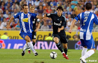 ambiente de gala en el nuevo estadio españolista para ver a los anfitriones y al Real Madrid. Un ambiente cargado de enorme emotividad en los prolegómenos del choque con el recuerdo a Dani Jarque. El partido fue bonito, disputado y bien jugado por ambos equipos, aunque fueron los nuestros los que llevaron toda la iniciativa a lo largo del choque. Pellegrini, que de inicio dejaba en el banquillo a Cristiano, Raúl y Lass, dejaba de jugar con cuatro hombres en ataque y reforzaba la zona de creación del equipo, metiendo en el centro del campo a Xabi Alonso, Granero, Kaká y Guti. Los cuatro estuvieron inconmensurables y aunque en mi opinión personal al equipo aun le falta mucho para jugar como un verdadero conjunto, también es cierto que este centro del campo le dio una imagen mejor al equipo. La jugada del primer gol madridista fue para enmarcar, una combinación entre Xabi, Kaká y Granero, que culminaría este ultimo cruzando el balón a Kameni. El segundo gol llegaría tras una excelente internada del brasileño que desde la línea de fondo centraría para que Guti culminara con un magnifico remate. El tercer tanto seria una jugada personal de Cristiano que culminaría el mismo introduciendo el balón por debajo de las piernas del portero camerunés que terminaría en las mallas pericas. El conjunto españolista a pesar del resultado no dejo una mala imagen, y pienso que este año no pasara los apuros del año anterior. En cuanto a los nuestros, no quiero ser tan triunfalista como la prensa de hoy, creo que aun nos queda mucho camino por recorrer para jugar como un autentico equipo, pero las vibraciones que nos van dejando partido a partido son muy buenas.