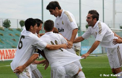 Los jugadores del Castilla celebrando uno de los goles fotografía realmadrid.com |