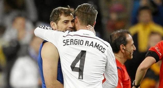 | Sergio Ramos en su partido 300 en Liga se abraza a Íker. fotografía marca.com |