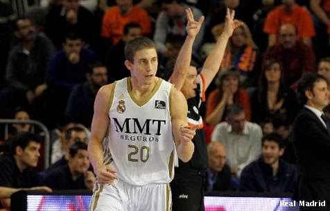 Entró el Madrid fuerte al partido, como queriendo solventar por la vía rápida. El conjunto de Laso quería abrir pronto una amplia ventaja que le ayudase a vivir “tranquilo” el resto del encuentro. Gran aportación en este primer cuarto de Tomic y Sergio Rodríguez para los madridistas. Por parte rival, Maldioni con un par de triples logró que la diferencia madridista no fuese mayor en este cuarto (18-26).