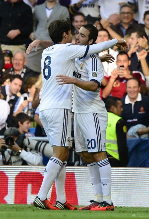 Higuaín junto a Kaká celebrando el primer gol del partido fotografía marca.com |