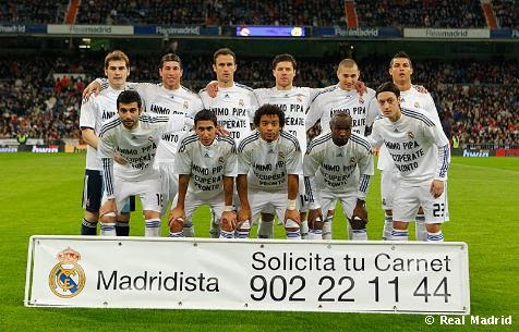 | El equipo titular con una camiseta de animo para Higuaín fotografia de realmadrid.com |