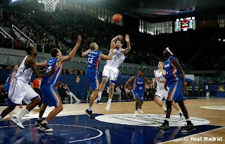 El Real Madrid se impuso, no sin dificultades, al Menorca. Gran parte de culpa la tuvo el acierto de los madridistas en el tiro de triples, ya que acertó a meter 15 en 21 intentos. Con un Tomic muy acertado en el tiro, el conjunto madridista se impuso en el primer cuarto por 24-20. En el segundo acto de esta primera parte, el equipo de Messina baso su juego en un gran acierto en ataque, logrando imponerse en este segundo cuarto por 25-21. Con ocho puntos de diferencia se marchaban los madridistas a los vestuarios. En cambio los baleares no se daban por vencidos, y apretaron de lo lindo a los madridistas, llegando a empatar el partido a 55. En los momentos más complicados del choque apareció la figura de Carlos Suárez, el cual gracias a su poder reboteador tanto defensivo, como ofensivo, llevo a su equipo a ponerse de nuevo por delante en el marcador. Con un parcial de 21-18 se acaba el tercer cuarto. En el ultimo acto, los madridistas jugaron a mantener su ventaja, mientras los menorquines intentaban acortar las diferencias en el luminoso. Con un 25-25 acabarían los últimos 10 minutos del choque. Los máximos anotadores del equipo blanco fueron Llull y Suárez con 18 puntos cada uno.