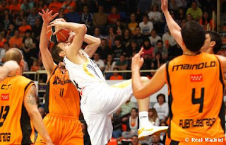 La fase regular de la Liga ACB, también toca a su fin, tan solo queda una jornada en la que se supone que salvo sorpresas, poco variara en la clasificación y nuestro equipo mantendrá la tercera plaza. No fue fácil el choque frente a los vecino madrileños de Fuenlabrada, pero una buena actuación de Llull y Reyes decanto la victoria del lado madridista. El primer cuarto, aunque igualado, cayo del lado fuenlabreño por 26-23.En el segundo cuarto de la primera mitad, los madridistas pegaron un arreón en el marcador, llevando un parcial de 11-20 al marcador, con una buena actuación en esta parte del encuentro de Bullock y Llull. En el primer acto de la segunda mitad, las cosas se volvieron a igualar, gracias al acierto de los jugadores del Fuenlabrada en el tiro de tres puntos, lo cual hizo que incluso los de Fuenlabrada tomaran ventaja en el marcador con un 49-47. El parcial al final del tercer cuarto era de 17-16. En el ultimo cuarto llegaron los mejores momentos de los madridistas, con unos acertado Tomic y Reyes, y una gran labor defensa-ataque de todo el equipo.