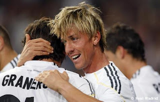 debutaba el Xerez en nuestro estadio como equipo de primera división, y con el venían 7000 animosos seguidores (a veces faltones en sus cánticos) que dieron colorido al partido. Algunos no se habían sentado en su asiento cuando Cristiano Ronaldo en una excelente jugada personal ponía el 1-0 en el marcador. Cuando todo apuntaba a una victoria fácil de nuestro equipo, el partido se volvió tedioso. El equipo desarrollo un juego plomizo ante un Xerez entusiasta que se coloco bien en el terreno de juego y evitando un futbol fácil a nuestros jugadores. Hasta el minuto 75 del encuentro no cambio el rumbo de un partido que podía acabar en tostón. Los cambios realizados por Pellegrini le dieron otro aire al equipo, Granero por Raúl en el 59, Guti por Kaká en el 68 y Van Nistelrooy por Cristiano en el 79, pintaban el partido de colores alegres cuando hasta ese momento imperaba el gris. En el minuto 75 y tras un corner botado por Granero, Cristiano cabeceaba a la red lo que suponía el 2-0 y su segundo gol en el partido (cuatro en lo que llevamos de campeonato). A partir de ese momento, la pegada del equipo tomo protagonismo. En el 78 y tras varios intentos de remate fallados por Benzema, seria Guti el que enganchaba una volea que ponía el 3-0 en el luminoso (esta en racha el de Torrejón). Tres minuto mas tarde seria Benzema el que marcaba un golazo tras enganchar un zurdazo que batía a Renán, era el 4-0. Y el gol mas emotivo del parido llegaría en el minuto 88, al batir por bajo Van Nistelrooy al meta jerezano. Era la reaparición soñada para el goleador holandés, pero que quedaría empañada por una nueva lesión que le va a tener mes y medio en el dique seco. Ayer vimos a un Madrid de juego plomizo pero pegada mortal. Esperemos que con el paso de las jornadas el equipo tome vistosidad en el juego, por que ya sabemos que en este equipo no vale solo ganar. Aunque es pronto para hacer criticas a la labor del mister (y esta es una opinión personal mía), creo que se ha encabezonado en jugar con cuatro en ataque, y personalmente pienso que con un hombre mas en el centro del campo funcionamos mejor.