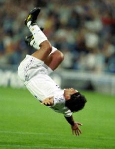 No puedo despedir este articulo sin recordar sus famosas volteretas en la celebración de sus goles. O aquel maravilloso gol de chilena que marcó al Logroñes en el Bernabéu.