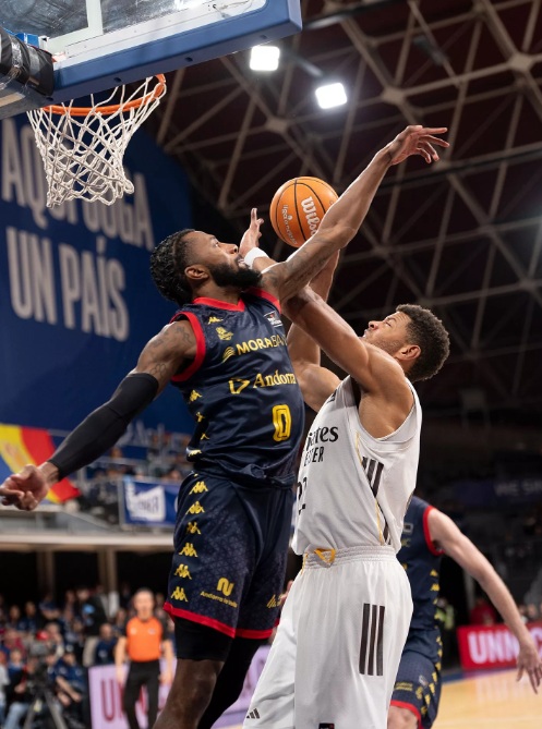 El Madrid trata de apretar en defensa, provocando pérdidas y malos tiros en los ataques locales, esto unido a por fin el primer triple de las manos de Abalde hace que la distancia se reduzca a cuatro puntos, 24-20, pero es un espejismo, porque los errores en el lanzamiento se suceden y Andorra lo aprovecha para volver a poner tierra de por medio y volver a los 10 puntos de diferencia con un parcial de 6-1. Scariolo vuelve a poner en pista al cinco inicial. Un dato curioso era el rebote ofensivo, ambos equipos parecían «dominar» el aro contrario, con Tavares como protagonista en aro de Andorra y Pustovyi aprovechando las ayudas hacia el exterior de chiquitín. Dos triples, Llull y Mario, nos devuelven al partido y obligan al tiempo de Plaza, 38-35. Tras una gran defensa que obliga a un tiro lejano de Kuric, Okeke empata el partido, lástima que un gran tapón de chiquitín acaba saliendo por línea de fondo y en la siguiente jugada Castañeda, gran protagonista del primer tiempo, 16 puntos, anota un triple de 8 metros a falta de 10 segundos para el descanso, al que se llega tras un tiempo de Scariolo en el que se decide la jugada final, balón a Llull que penetra y deja una gran bandeja salvando el intento de tapón rival para el 41-40.