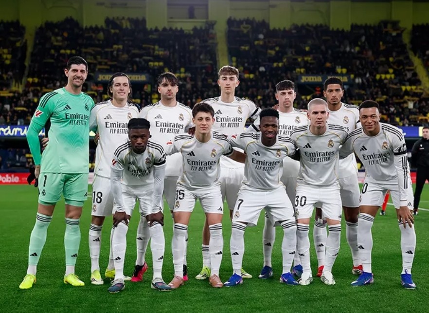 Real Madrid CF: Courtois; Valverde, Asencio, Huijsen, Carreras; Camavinga, Arda, Bellingham; Mastantuono, Vinicius y Mbappé. Sustituciones: Min.74, Gonzalo por Mastantuono; Min.80, Brahim por Güler.