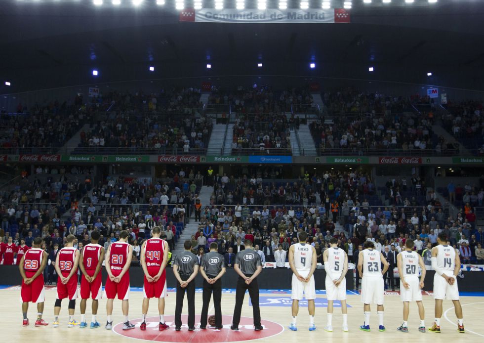 Minuto de silencio antes del Real Madrid – Manresa por las victimas del atentado de París. fotografía as.com |