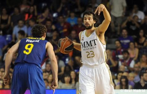 | Sergio Llull ante Huertas en un momento del partido de ayer fotografía realmadrid.com |