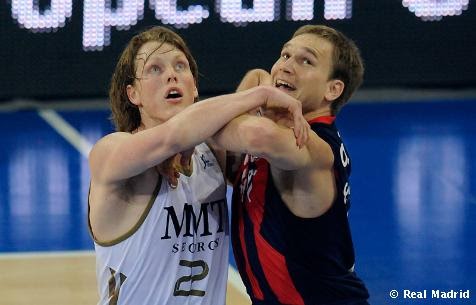 | Singler disputando un balón con un jugador del Baskonia fotografía realmadrid.com |