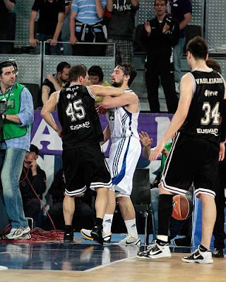 A falta de poco mas de cinco minutos el resultado era de 61-59 para los madridistas, y aquí, en la recta final es donde se impuso la mayor experiencia de los merengues. Sergio Rodríguez tomo los mandos de su equipo, y el Madrid llego a endosar a los de Bilbao un parcial de 10-2 que sentencio el choque. Importante aportación anotadora de Tomic en esta fase final del encuentro.