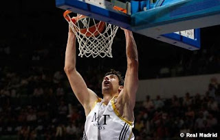 El Real Madrid, se asemejo ayer a ese equipo que todos los madridistas deseamos, y forzó el quinto y definitivo partido en el que se va ha decidir cual de los dos equipos es el rival del Barcelona en la lucha por el titulo. El equipo de Messina gracias a un gran trabajo defensivo y a las actuaciones de Reyes y en especial de Tomic, puso las bases para lograr esta victoria y estar a solo otra de pasar a la final. Aun así, los de Vitoria empezaron mandando en el partido, y suyo fue el primer cuarto por 24-26, quizás en los 10 minutos más intensos del choque. Pero el Madrid no estaba por la labor de tener otro partido en el que por no matar a tiempo, al final el rival era el que mordía. En el segundo cuarto, los madridista salieron con la intención de dar el golpe de gracia al Baskonia, consiguiendo imponerse en este cuarto por 10 puntos de ventaja(23-13). El croata Tomic en una gran actuación, tomo el mando de operaciones, y ayudado por un no menos genial Felipe Reyes, sentaron las bases para la victoria de su equipo. El primer acto de la segunda mitad, fue el más igualado del encuentro, al menos en cuanto al marcador se refiere (17-17). Los vitorianos intentaban mantenerse vivos en el partido gracias a la actuación de su estrella, Splitter, pero en esta ocasión los madridistas no dieron opciones. El ultimo cuarto fue la estocada final del equipo blanco que gano por un parcial de 16-6, dejando el marcador final en esa diferencia de 18 puntos (80-62). Tomic se erigió en la estrella del Madrid consiguiendo 19 puntos y una valoración de 36 (19 puntos,14 rebotes y 2 asistencias).