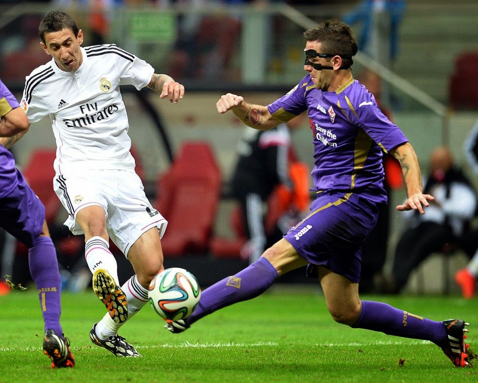 El partido comenzó como si de competición oficial se tratase, ya que los italianos salieron con muchas ganas al césped del Narodowy Stadion, a lo que los nuestros de inicio respondieron con contundencia. Si primero era Di María el que avisaba con un disparo desviado, los violetas de la Fiore respondían con un disparo de Babacar al que tuvo que responder con una buena parada Keylor. A continuación en una de las contras mortales made in Mourinho (quizá el mejor legado del portugués en su paso por el club), Cristiano inicia la galopada dándosela al argentino Di María, que de manera espectacular se la devuelve al luso y este la emboca en la portería italiana.
