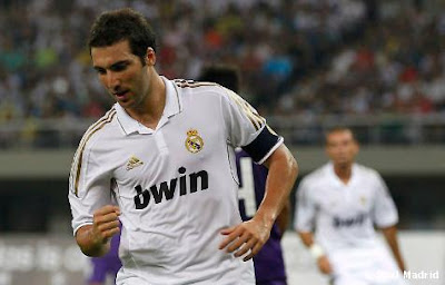 | Gonzalo Higuaín portando el brazalete de capitán en el partido de ayer fotografía realmadrid.com |