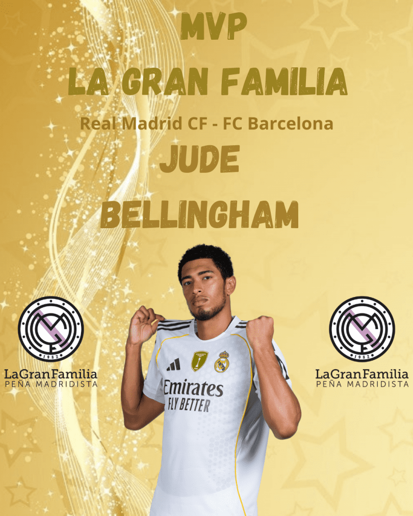 El Bernabéu estaba a reventar para apoyar al equipo en su partido frente al Barcelona. Había que vencer para dar un golpe sobre la mesa y poner tierra de por medio en la clasificación respecto a los culés. Y con goles de Mbappé y Bellingham lo hizo. Tras el partido os dimos la opción de elegir entre Mbappé, Vinicius, Bellingham y Valverde para elegir el MVP madridista, siendo el inglés el elegido por vosotros con un 61% de los votos, seguido de Mbappé 30%, Vinícius 8% y Valverde 1%.
