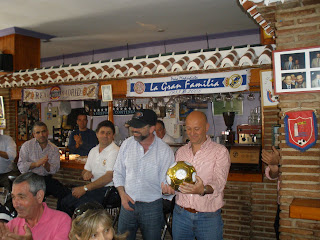 Esta peña que siempre a sido tan viajera, tuvo que dejar de hacer desplazamientos por España debido al precio abusivo que los club rivales nos ponen cada vez que visitamos sus estadios. Este que escribe ha podido hacer hasta seis y siete desplazamientos en una misma temporada, pero como ya digo, los precios abusivos de las entradas hizo tomar la decisión a nuestro presidente de dejar de hacerlos, ya que con autobús y hotel se nos ponía el seguir a nuestro equipo en un cifron que muchos no nos podemos permitir. Pero bueno, de vez en cuando nos damos una alegría para seguir a nuestro Madrid, y esta ocasión y junto a la Peña Madridista Villajimena, nos pusimos camino a la capital de la Costa del Sol para disfrutar de un buen fin de semana y animar a nuestro equipo. Salimos el viernes día 3 a las 16:30 desde nuestro estadio, y después de recoger a los compañeros de la Peña Villajimena en el barrio de Vicalvaro pusimos camino a Málaga. El viaje no se hizo excesivamente pesado, paramos a eso de las 20:00 en la población manchega de Almuradiel en donde cenamos. Después retomamos camino hacia Malaga a donde llegamos sobre las 23:45 de la noche. Nos alojamos en el hotel Tryp Alameda, el cual era muy acogedor y esta muy bien situado. Al llegar y con las llaves de nuestras habitaciones nos entregaron unas bolsas que contenia varia información de la comarca malagueña y unas botellitas de aceite y de vino de la tierra, todo por gentileza de uno de los amigos malagueños que nos acompañan en nuestros viajes al extranjero (disculpa que ahora mismo no me acuerde de tu nombre, pero en nombre de todos, ¡muchas gracias!). La mañana y parte de la tarde del sábado cada uno la dedico para pasear por Málaga o par desplazarnos a localidades cercanas, de hecho algunos nos fuimos hasta Fuengirola en donde nos acercamos hasta su cementerio a depositar unas flores en la tumba de nuestro añorado Juan Gomez “Juanito”. Ya sobre las 19:00 quedamos en el hotel para desplazarnos hasta la Rosaleda, estadio de nuestro rival. Como decía al principio de este articulo, lo de las entradas es una pasada, 90 euros por una localidad que aunque no estaba mal, no es una tribuna, pero bueno. El partido en si no tuvo mucha historia. El primer tiempo fue para olvidar, nuestro equipo no encontraba su sitio en el campo, y el Málaga timidamente intentaba acercarse a nuestro área. El segundo tiempo cambio algo, un golazo del Pipita Higuain le cambio la cara al partido y desde ese momento hasta el final, nuestro equipo no paso mayores apuros para hacerse con los tres puntos, aunque la verdad es que el partido fe muy malo. Ya en la jornada del domingo nos fuimos a visitar las Cuevas de Nerja, como anécdota comentaros que en nuestro hotel se alojaba el trio arbitral que dirigió el partido entre el Malaga y el Madrid, el colegiado Undiano Mallenco, con el cual algunos de los compañeros se fotografiaron. Volviendo a las actividades del domingo, como decía visitamos las impresionantes Cuevas de Nerja para después poner rumbo a la localidad de Torrox en donde visitamos la Peña Madridista de esa localidad. El recibimiento fue magnifico, nos tenian unas mesas preparadas con un almuerzo que nos agrado a todos. Nuestro presidente Gerardo y Teo de la peña Villajimena, dedicaron unas palabras de agradecimiento a nuestros anfitriones y le entregaron un balón firmado por los jugadores de nuestra plantilla. Después del rato tan agradable pasado con los amigos de la Peña de Torrox, pusimos rumbo a la preciosa ciudad de Granada, en donde paramos durante un par de horas para disfrutar de esta linda ciudad. Ya de camino a Madrid, volvimos a parar en Almuradiel para cenar y durante el trayecto se hicieron unas rifas que sirvieron para hacernos el viaje mas llevadero. Llegamos a la capital sobre las 22:30 de la noche. El fin de semana resulto muy agradable y encima gano nuestro Madrid. Ojala podamos repetir esto con mas frecuencia.